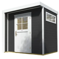 Disponible dans une version bois brut ou finition anthracite, cet abri pour robot tondeuse de la marque Weka permet de protéger votre machine des intempéries et du soleil pendant les phases de recharge ou d’inactivité. Il dispose pour cela d’un toit monopente en OSB de 19 mm d’épaisseur qui repose sur des parois en bois d’épicéa de 21 mm d’épaisseur. L’inclinaison de la toiture et son revêtement bitumé permettent d’assurer l’écoulement des eaux pluviales pendant une averse ainsi que sa bonne étanchéité.