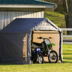 L’abri souple pour animaux de Shelter Logic est pratique parce qu’il est mobile et peut s’installer facilement et rapidement dans n’importe quelle pâture. Il est constitué d’une structure en acier enduit et d’une bâche en polyéthylène verte. Le box souple sert aussi bien pour abriter les animaux qu’à stocker la paille.
