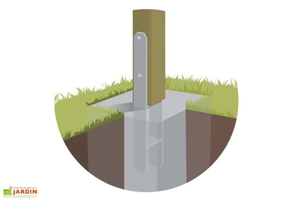 Cet ancrage de chez Forest-Style est conçu pour renforcer la stabilité de votre carport. Il affiche des dimensions de 13 x 6 cm, pour 60 cm de haut. Très résistant, le support est fabriqué en acier galvanisé, et doit être fixé à des poteaux en bois de 12 x 12 cm. La quincaillerie nécessaire est fournie avec cet accessoire pour carport.