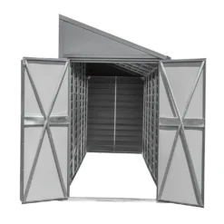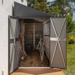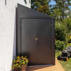 Cette remise de jardin adossĂ©e Spacemaker est conçue pour ĂŞtre installĂ©e contre le mur de votre habitation, permettant ainsi d’économiser de l’espace, ce qui est idĂ©al si vous possĂ©dez un petit jardin. Elle ne mesure en effet que 1,24 m de large sur 2,03 m de long, ce qui ne l’empĂŞche pas d’offrir un espace de rangement suffisamment grand (2,38 m²) pour stocker du matĂ©riel de jardinage, des outils ou deux vĂ©los, par exemple.Â