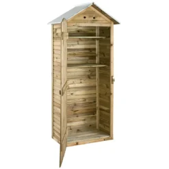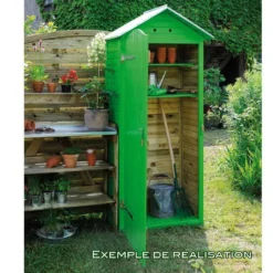 Votre armoire de jardin vous offre une capacitĂ© de stockage de 0,63 m³ et possède 2 Ă©tagères ainsi qu’un plancher. Vous pourrez donc profiter de cet espace pour stocker tous vos outils, tout en les protĂ©geant des intempĂ©ries grâce Ă son toit en bois recouvert de plaques de zinc pour une Ă©tanchĂ©itĂ© Ă toute Ă©preuve. Cette armoire de jardin est donc une solution de rangement compacte et sĂ©curisante, offrant toutefois une belle capacitĂ© de stockage.