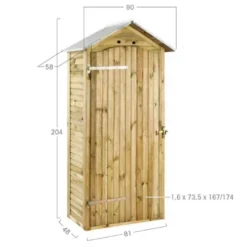 Votre armoire de jardin Simia de la marque Jardipolys affiche des dimensions totales de 90 x 58 cm (longueur, largeur) pour 204 cm de hauteur. Elle possède des dimensions intĂ©rieures de 77,5 x 42,5 cm (longueur, largeur) pour 193 cm de haut. Elle est Ă©quipĂ©e d’une porte de 73,5 cm de large sur 167 Ă 174 cm de hauteur, comportant un système de fermeture en deux temps pour plus de sĂ©curitĂ©. Cette armoire de jardin a Ă©tĂ© fabriquĂ©e Ă partir de bois de pin sylvestre certifiĂ© FSC et traitĂ© autoclave de classe 3 afin de conserver tout son Ă©clat. Ses parois ont une Ă©paisseur de 15 mm.