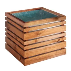 Cette jardinière possède un style très moderne grâce Ă ses jolis rebords mĂ©talliques et sa cuve en acier galvanisĂ© visible Ă travers les lames en bois. La cuve comporte 1 trou pour faciliter l’Ă©vacuation de l’eau. Le zinc du bac remplace le gĂ©otextile. Les lames mesurent 4 ou 8 cm de hauteur et 1,6 cm d’Ă©paisseur. Ce bac Ă fleurs offre une contenance de 143 litres et affiche des dimensions intĂ©rieures de 53,6 x 53,6 cm (largeur, profondeur) pour 49,8 cm de hauteur. Il repose sur des pieds de 1,5 x 3 cm.Â