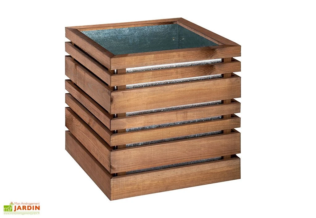 Ce bac Ă fleurs Lign Z de la marque Burger mesure 50 x 50 x 50,2 cm (l,p,h) et revĂŞt une belle couleur brune. Il possède un design graphique et contemporain grâce Ă ses lamelles de bois de diffĂ©rente taille, qui laissent entrevoir son joli bac en acier d’une contenance de 95 litres. Il pourra accueillir un petit arbuste, des fleurs ou un petit buis pour sublimer votre terrasse.Â