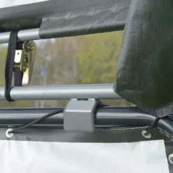 Chacune de ces bâches latérales mesure 370 cm de long sur 170 cm de haut. Elles sont fabriquées en polyéthylène tissé triple épaisseur, un matériau robuste qui ne craint ni l’humidité, ni les rayons UV. Le tout se montrera donc parfaitement étanche et conservera sa couleur verte pendant de longues années sans décolorer. Notez enfin que ces bâches sont livrées accompagnées de cordes et de sangles de fixation.