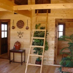 Votre bungalow Nottingham possède 3 pièces toutes Ă©quipĂ©es de portes en bois de 0,85 x 1,86 m (l,h), ainsi que d’une mezzanine de 12 m², que vous pourrez visualiser dans les photos du produit. Une troisième porte simple est placĂ©e au fond de l’abri, donnant sur l’extĂ©rieur. Les dimensions extĂ©rieures de l’abri de jardin sont de 4,50 x 6 x 2,43 m (l,l,h). Les dimensions intĂ©rieures de l’abri sont de 4,33 x 5,85 (l,l,).Â