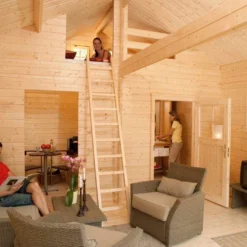 Le Bungalow de jardin en bois Nottingham de 4,5 x 6 m est fabriquĂ© par Eurovudas Ltd. Ce chalet en pin nordique semi-habitable est composĂ© de planches robustes de 44 mm d’Ă©paisseur (non peint). Le montage est rĂ©alisĂ© par emboĂ®tement perpendiculaire des planches les unes avec les autres. Sa double porte d’entrĂ©e en bois est entièrement vitrĂ©e et mesure 1,29 x 1,18 m (l, h)avec double vitrage.