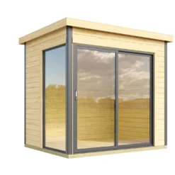 Ce studio de jardin en bois offre une surface de 5 m² grâce à ses dimensions au sol de 2,50 x 2,00 m. Ses dimensions compactes sont idéales pour créer un bureau de jardin même si vous disposez d’un espace restreint sur votre terrain. Sa baie vitrée et sa grande fenêtre fixe offrent une belle luminosité à l’intérieur de l’abri.