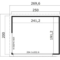 - Dimensions hors tout : 269,6 x 219,6 soit une surface totale de 5,92 m²