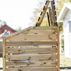 Le cache-poubelle double en bois de chez Habrita est une solution esthĂ©tique pour ranger vos poubelles disgracieuses. En pin traitĂ© autoclave classe 3, votre cache poubelle s’adosse Ă un mur. L’arrière du cache poubelles est ouvert, il est Ă©quipĂ© de croisillons. Le couvercle Ă rabat permet une utilisation plus facile. Ses dimensions sont de 1,50 x 0,90 x 1,20 m (l,l,h). Les lames de cĂ´tĂ© possèdent une Ă©paisseur de 8 mm et les lames du couvercle possèdent une Ă©paisseur de 14 mm. Il est garanti 5 ans.