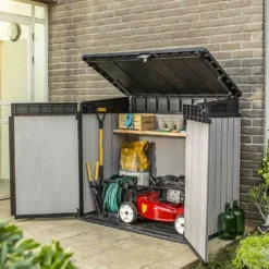 Coffre De Rangement Extérieur En Résine 880 L Avec Couvercle Sur Vérins