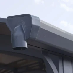 Afin d’évacuer l’eau de pluie tout en en permettant la collecte, ce carport en aluminium s’est vu dotĂ© d’un système de gouttière. Vous pourrez donc rĂ©utiliser cette eau pour arroser votre jardin ou pour laver votre voiture, entre autres.Â