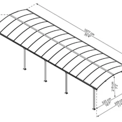 Le carport Arcadia 10600 de chez Palram-Canopia offre suffisamment d’espace pour protĂ©ger deux Ă trois voitures des intempĂ©ries, mais Ă©galement d’une surexposition au soleil et Ă ses rayons. Il affiche en effet des dimensions de 3,59 x 10,72 m, pour 2,19 m de haut, et couvre une surface de 38,5 m². Ce carport Ă©tant livrĂ© en kit, son montage devra ĂŞtre rĂ©alisĂ© par vos soins.Â