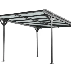 La toiture de cet abri pour voiture est conçue en polycarbonate transparent. Elle offre une excellente protection contre la pluie, la neige ou la grêle et grâce à son traitement UV elle protègera également votre véhicule du soleil. Sa toiture monopente permet à l’eau de pluie de s’écouler facilement.