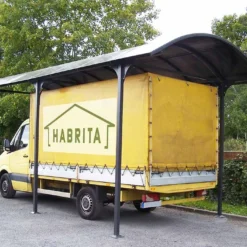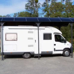 La toiture du carport est en tôle de polycarbonate de 6 mm d’épaisseur. La toiture laisse passer la lumière sans laisser passer la chaleur ni les UV. Le carport permet de protéger votre camping-car, camionnette, caravane ou encore bateau de la neige, de la pluie, des UV et des fortes chaleurs.