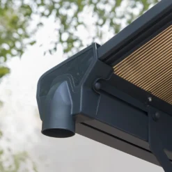FabriquĂ© Ă partir de matĂ©riaux solides et rĂ©sistants aux intempĂ©ries, ce carport en aluminium est pensĂ© pour rĂ©sister Ă des vents pouvant atteindre les 120 km/h. Sa couverture est conçue pour supporter une charge maximale de 150 kg/m², en cas de chute de neige par exemple. L’eau de pluie se verra Ă©vacuĂ©e ou collectĂ©e, au choix, grâce aux gouttières avec système de rĂ©cupĂ©ration d’eau Ă©galement prĂ©sentes.Â