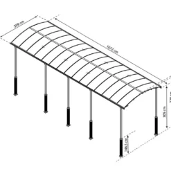 Le carport pour camping-car Alpine 10600 de chez Palram-Canopia offre une largeur de passage de 3,25 m et affiche une longueur de 10,72 m, pour 3,29 m de haut. Il couvre donc une surface de 38,5 m², soit assez d’espace pour stationner et protĂ©ger votre camping-car de la pluie, de la grĂŞle ou de la neige, mais Ă©galement du soleil et de ses rayons.Â
