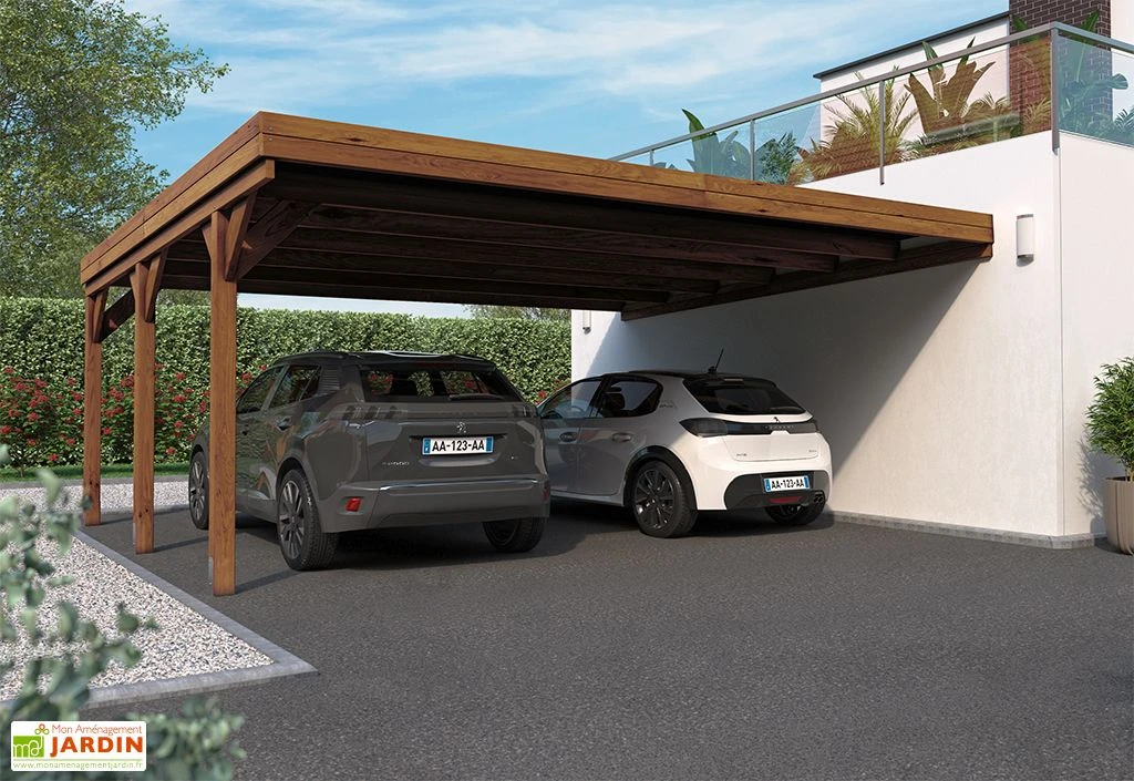 À noter : Le bois du carport est teinté dans un coloris marron, donc aucune lasure supplémentaire n’est nécessaire.