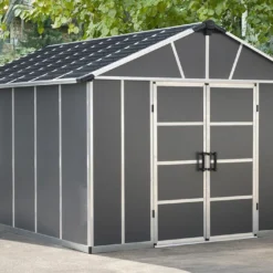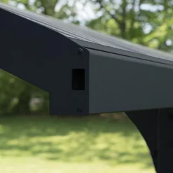 Ce carport double Palram-Canopia est en effet dotĂ© d’une couverture composĂ©e de panneaux de polycarbonate qui, s’ils laissent passer plus de 90% de la lumière naturelle, se chargeront de filtrer les UV. Les panneaux sont Ă©galement traitĂ©s de sorte Ă ne jamais dĂ©colorer, bien qu’exposĂ©s de manière rĂ©pĂ©tĂ©e et prolongĂ©e Ă la lumière du soleil. Des gouttières sont intĂ©grĂ©es Ă la toiture du carport, permettant ainsi d’évacuer l’eau de manière efficace en cas de pluie ou de neige.Â