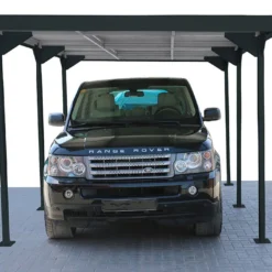 Le carport en métal Duramax est recouvert d’une peinture époxy gris anthracite qui le protège parfaitement contre la corrosion. La toiture est assurée par des panneaux en acier galvanisé à chaud, extrêmement résistant à la rouille également. L’abri voiture ne vous demandera aucun entretien et bénéficie d’une excellente durée de vie.