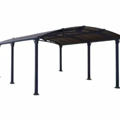 Le carport Arcadia de chez Palram-Canopia est conçu pour permettre le stationnement d’une voiture. Il couvre une surface de 18 m² et possède une solide structure en aluminium gris RAL 7016 ainsi que des connexions en acier galvanisĂ©, des matĂ©riaux insensibles Ă la rouille qui rĂ©sisteront parfaitement aux chocs et aux intempĂ©ries. Il offre une largeur de passage de 3,25 m et affiche une hauteur de 2,19 m.Â