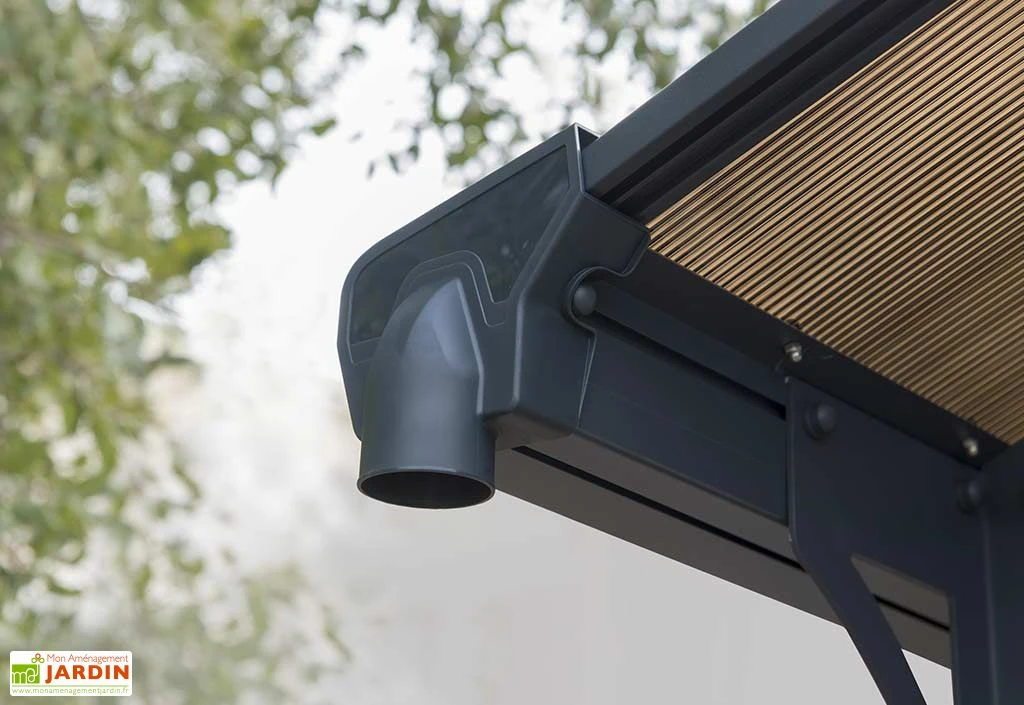 Facile Ă monter, ce carport est composĂ© de six poteaux carrĂ©s de 8 cm de cĂ´tĂ© chargĂ©s de soutenir l’ensemble de la structure. Les profilĂ©s sont prĂ©-percĂ©s, les panneaux prĂ©dĂ©coupĂ©s et conçus pour ĂŞtre assemblĂ©s aisĂ©ment en les faisant coulisser. Un système de gouttière est Ă©galement inclus, permettant non seulement l’Ă©vacuation de l’eau, mais aussi sa collecte. Notez enfin que tous les Ă©lĂ©ments nĂ©cessaires au montage du carport sont fournis.Â