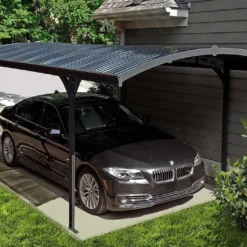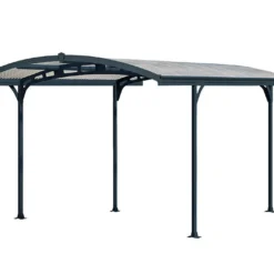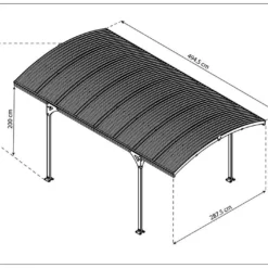 Le carport Atlas de chez Palram-Canopia possède une structure fabriquĂ©e en aluminium (connecteurs en acier galvanisĂ©). Il ne vous demandera donc aucun entretien, l’aluminium Ă©tant un matĂ©riau naturellement rĂ©sistant Ă la corrosion et Ă la moisissure. Solide et parfaitement stable, ce carport mesure 4,94 m de long sur 2,87 m de large pour 2,39 m de haut. Il couvre donc une surface de 14 m², soit suffisamment d’espace pour y loger un vĂ©hicule.