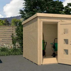 Ce carport en bois est livré en kit et devra être monté par vos soins à l’aide de la notice détaillée et des accessoires fournis. Il devra être installé sur un sol dur et à niveau (surface au sol : 17,38 m²). Des ancrages sont disponibles dans l’onglet « Accessoires ».