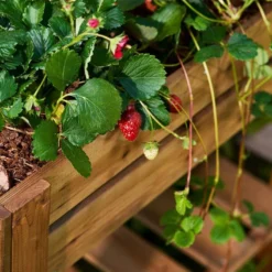Ce carré potager en bois Ekju dispose d’un plancher et d’une étagère, les planches mesurent 92 mm de largeur et 14 mm d’épaisseur. Le bac potager possède une contenance de 98 L et mesure 70 x 70 x 20 cm. Il est livré avec son géotextile.