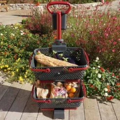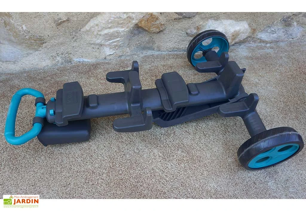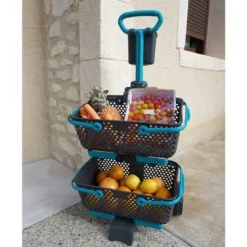 Fabriqué en France, ce chariot est conçu en polypropylène et en ABS, des plastiques ultra robustes résistants aux chocs ainsi qu’aux rayons UV. Il pourra alors supporter deux paniers chargés à hauteur de 5 kg chacun environ. Notez enfin que le chariot est disponible dans trois coloris au choix : rouge cerise, vert tilleul ou bleu turquoise.