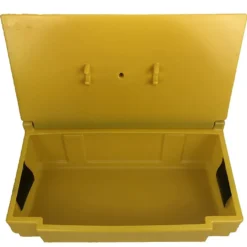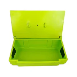 Le coffre de rangement dispose de clips intégrés sous le couvercle offrant un espace supplémentaire pour fixer un petit outil comme une pelle ou un râteau.