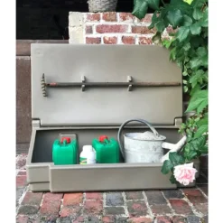 Ce coffre de jardin de 50 L de chez Plast‘Up mesure 98 x 50 x 34 cm et fait un poids de 9 kg (à vide). Il est idéal pour ranger vos outils ou votre matériel dans votre jardin, maison ou aussi votre voiture. Des poignées intégrées de chaque côté du coffre permettent de le transporter facilement et sans aucun effort.
