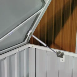 Ce coffre de jardin de chez Duramax est fabriquĂ© en mĂ©tal Ă partir de panneaux renforcĂ©s offrant une meilleure rigiditĂ©. Son couvercle dispose d’un système d’ouverture et de fermeture par vĂ©rins Ă gaz. Il mesure 174 ccm de longueur, 73 cm de profondeur et 73 cm de hauteur offrant près d’un mètre cube de rangement.