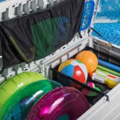 Le coffre de jardin Keter Pool Box a spécialement été pensé pour la piscine. En effet, il propose une belle contenance de 455 litres et bénéficie de rangements organisés grâce à la présence d’un filet de rangement et d’un panier de suspension. Son design imitation bois peint en blanc s’intègre parfaitement aux abords de la piscine.