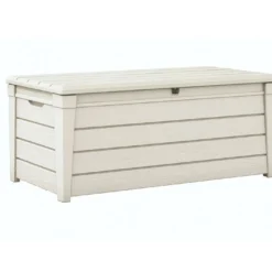 Solide, ce coffre de jardin peut également servir de banc puisque son couvercle peut supporter un poids uniformément réparti de 365 kg. Il mesure 145 cm de longueur, 69,7 cm de largeur et 60,3 cm de hauteur et dispose de dimensions intérieures de 135,5 x 59 x 54,5 cm (l,l,h). Le plancher intérieur peut supporter un poids de 50 kg max.