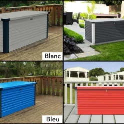Le coffre de rangement Patiobox S est disponible dans plusieurs coloris à choisir dans le menu déroulant. Il est en acier galvanisé et gainé PVC pour une excellente résistance à la corrosion, sans demande aucun entretien.