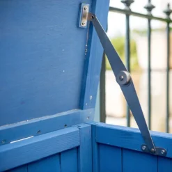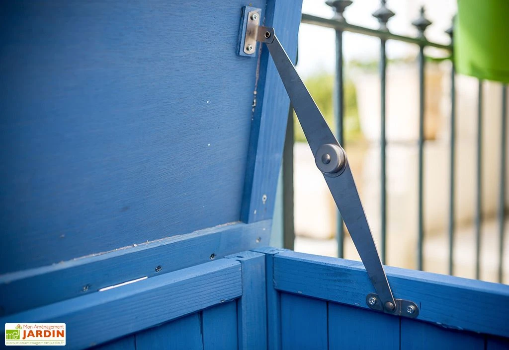 Ce coffre de jardin vous permettra donc de ranger vos outils, matĂ©riel de jardinage ou vos accessoires de salon de jardin, par exemple. Il est dotĂ© d’un couvercle Ă©quipĂ© de deux Ă©querres pour son ouverture et sa fermeture. Facile Ă monter, ce coffre de rangement est livrĂ© en kit et est dĂ©jĂ traitĂ©, notamment contre les intempĂ©ries. Il bĂ©nĂ©ficie en effet d’une lasure de couleur bleue lui offrant une belle rĂ©sistance Ă l’eau. Ce coffre ne demandera donc que très peu d’entretien.Â