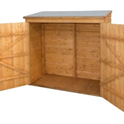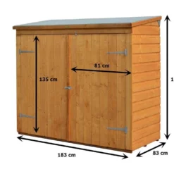Votre coffre de rangement en bois de la marque Rowlinson permet d’accueillir deux vĂ©los et de l’outillage ou des accessoires. Le coffre mesure 182,5 x 82,5 x 164,1 cm (l,l,h) pour une surface intĂ©rieure au sol de 1,316 m². Les portes verrouillables mesurent 1,62 m de large pour une hauteur de 1,345 m (le cadenas n’est pas fourni.)