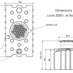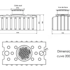 Cette cuve de récupération d’eau de pluie fabriquée en polyéthylène mesure 220 cm de longueur, 120 cm de largeur et sa hauteur est réglable entre 128 cm et 148 cm grâce à son dôme extensible. Elle pèse 90 kg. Sa contenance de 2000 litres est idéale pour un petit jardin ou un petit potager.