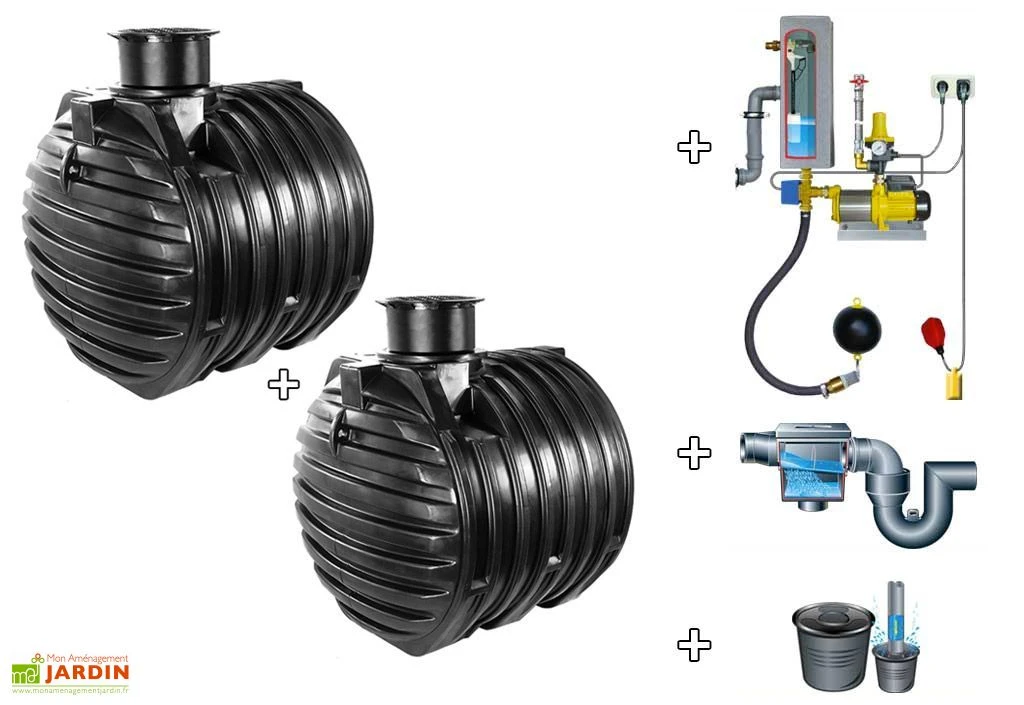 Le kit comprend les deux cuves protégées d’un dôme de compensation et d’un couvercle de sécurité avecÂ