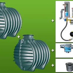 Les deux cuves de récupération d’eau de chez GreenLife ont une contenance de 6000 L chacune, soit un total de 12 000 L. Les cuves sont en polyéthylène haute densité, construites en un seul bloc pour éviter toute soudure.Â