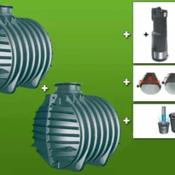 Vos 2 cuves de rĂ©cupĂ©ration d’eau de chez GreenLife peuvent accueillir chacune 6000 litres. Vous pourrez ainsi rĂ©cupĂ©rer jusqu’Ă 12 000 litres d’eau de pluie. Les cuves sont en polyĂ©thylène haute densitĂ© et disposent d’un dĂ´me de compensation et d’un couvercle de sĂ©curitĂ© pour un maximum de rĂ©sistance. La livraison des cuves inclut un stabilisateur d’arrivĂ©e d’eau de pluie Ă installer au fond de la cuve, une pompe immergĂ©e avec un filtre aspirant, un interrupteur automatique et une protection contre la marche Ă vide, un boitier de branchements Ă l’eau, une grille de filtrage Ă poser sur les gouttières de 20 mètres, un tuyau de pression de 5 mètres et du matĂ©riel de marquage. Les cuves sont fabriquĂ©es en une seule pièce ce qui Ă©vite les soudures et donc renforce les rĂ©cupĂ©rateurs. Les cuves et le kit vous permettent de rĂ©cupĂ©rer l’eau de pluie et de la rĂ©utiliser dans le jardin. La garantie sur les cuves est de 15 ans et de 2 ans sur les accessoires. Votre cuve est livrĂ©e face Ă votre domicile. Votre aide peut vous ĂŞtre demandĂ©e pour le dĂ©chargement (prĂ©voir le matĂ©riel nĂ©cessaire ou des personnes lors de la livraison).
