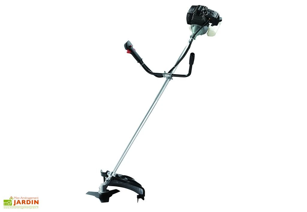 La dĂ©broussailleuse thermique possède une puissance de 1230 Watts et 43 CC. Elle fonctionne avec un moteur 2 temps. 2 en 1, cette dĂ©broussailleuse fonctionne avec un fil de 2,5 mm de diamètre ou avec une lame 3 dents. La largeur de coupe offerte par le fil est de 44 cm et la largeur de coupe de la lame est de 23 cm.Â