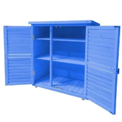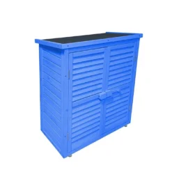Idéal pour aménager votre extérieur, cet ensemble de meubles de jardin est composé d’une armoire cabine, d’une armoire basse, d’un coffre de rangement et d’une table de rempotage. Ces différents meubles sont fabriqués en bois certifié FSC, donc issu de forêts gérées dans le respect de l’environnement. Le bois est également lasuré en bleu, et ne craindra alors ni la chaleur, ni l’humidité. Le tout étant livré en kit, vous devrez monter ces meubles vous-même.