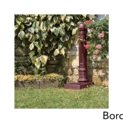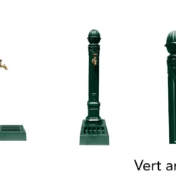 La fontaine de jardin de chez Dommartin est en fonte traitée anticorrosion par thermo-laquage. Elle est coloris vieux bronze et s’intègre facilement dans le jardin. La fontaine dispose d’une vasque et d’un robinet colvert en laiton. Le robinet est livré avec un raccordement pour brancher un tuyau d’arrosage. La fontaine en fonte est extrêmement résistante, utile et décorative.