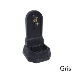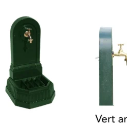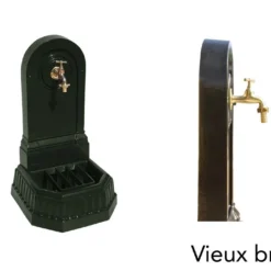 La fontaine mesure 35 cm de profondeur, 40 cm de largeur et 70 cm de hauteur et pèse 40 kg. Elle dispose d’une vasque et d’un robinet standard et doit être installée contre un mur. La fontaine en fonte est également livrée avec un adaptateur qui vous permet de brancher un tuyau d’arrosage.