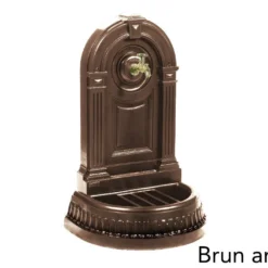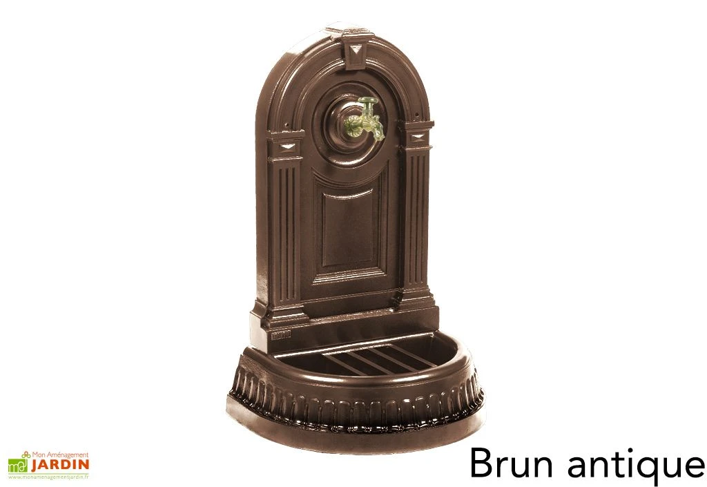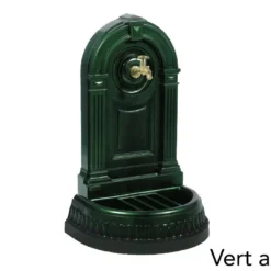 La fontaine en fonte est livrée avec son robinet colvert et un adaptateur permettant de raccorder un tuyau d’arrosage. La fonte est protégée par un traitement anticorrosion par thermolaquage, que vous pourrez choisir parmi 5 couleurs. Elle ne craint donc pas la rouille.