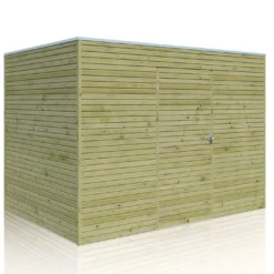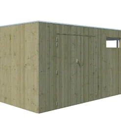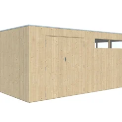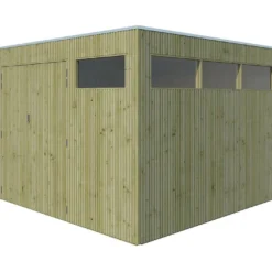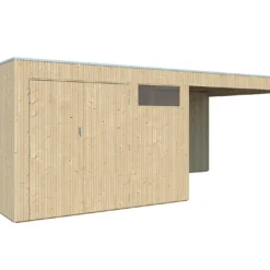 Ce garage est fabriqué en épicéa massif brut certifié FSC. Le bois utilisé provient donc d’exploitations forestières respectueuses de l’environnement et gérées de manière responsable. Ses parois de 28 mm d’épaisseur supportent une toiture plate couverte d’un bac acier laqué avec feutre anti-condensation. Le tout est donc parfaitement étanche, même en cas d’intempéries.
