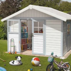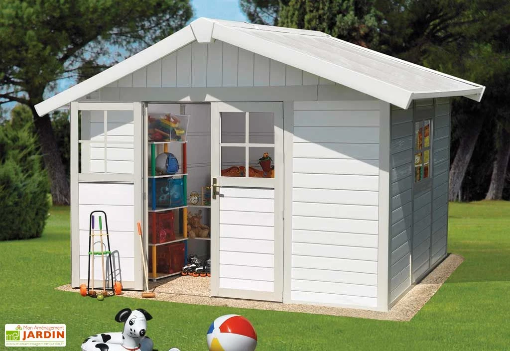Votre abri de jardin PVC DĂ©co 7,5 est de fabrication française. Il mesure 3,70 x 2,98 x 2,50 m (l,l,h) hors tout. Sa surface utile est de 7,04 m². L’armature de l’abri est en mĂ©tal et les parois sont en PVC de 26 mm d’Ă©paisseur. Le toit a une inclinaison de 20° et est en lames PVC menuisĂ©es de coloris gris vert.Â