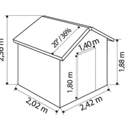 Les parois de l’abri de jardin mesurent 26 mm d’Ă©paisseur pour une hauteur de 1,88 m. La toiture est en lames de PVC avec une pente Ă 20°. Il existe dans deux coloris que vous pourrez choisir dans vos options : gris bleu ou gris vert avec des poteaux blancs.